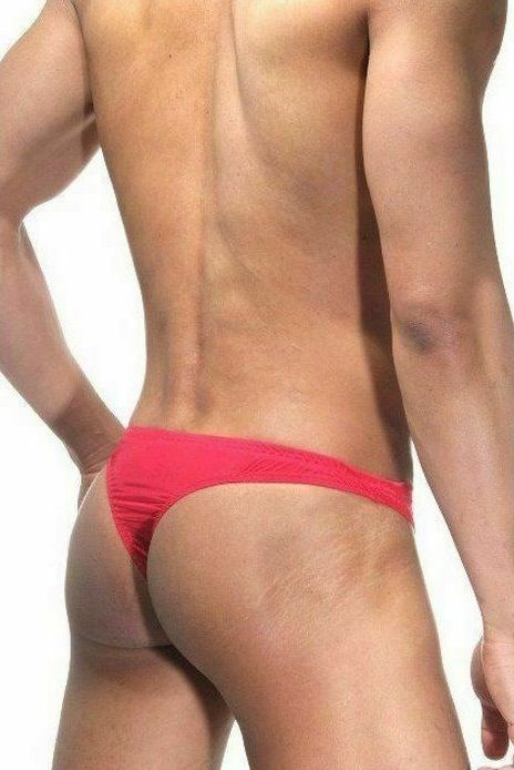 Мужские красные трусы-тонги на застежке.