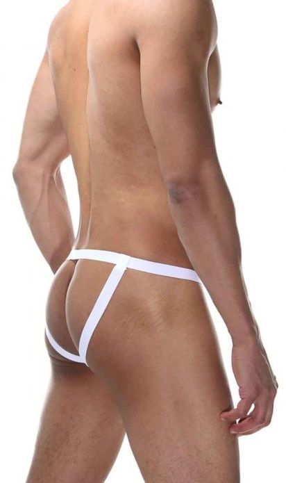 Мужские трусы-джоки на толстых резинках. Передняя часть трусов из кружева, со специальным карманом для пениса с открытым кончиком.