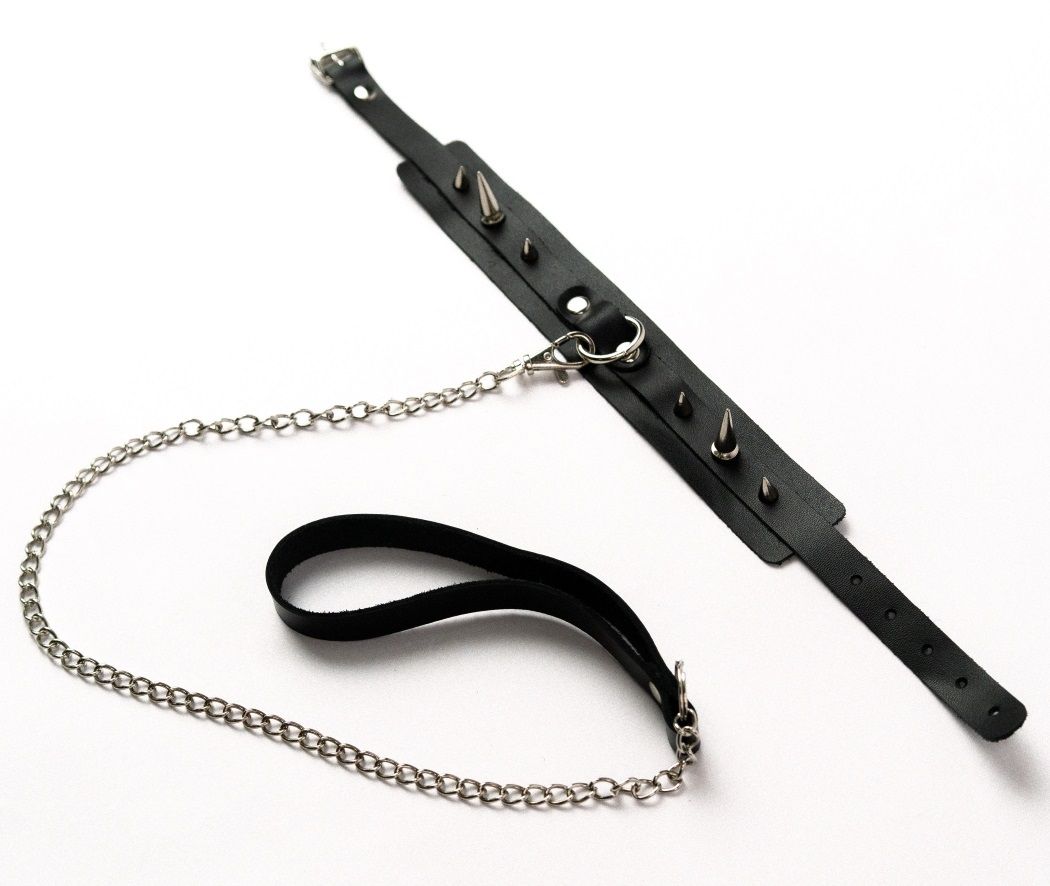 Ошейник имеет декоративную вставку с кольцом для крепления металлического поводка с удобной ручкой. Выполнен из натуральной кожи.