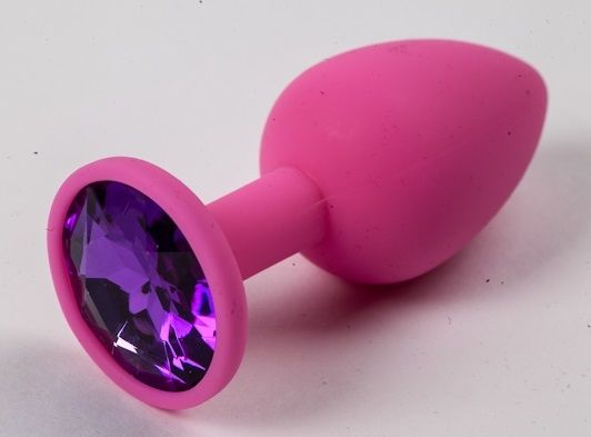 Розовая анальная пробка с фиолетовым кристаллом. Широкое основание позволяет максимально безопасно использовать этот интимный аксессуар.
