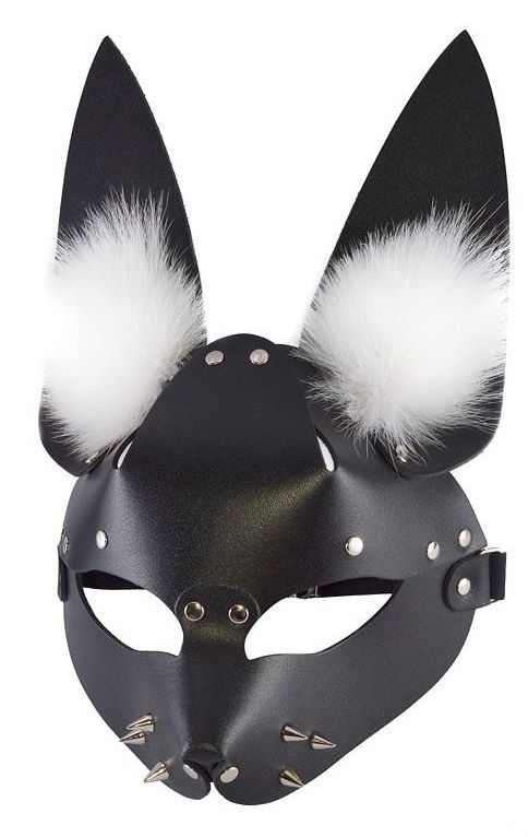 Маска изготовлена из натуральной кожи и декорирована металлическими шипами и натуральным мехом. Размер маски можно подогнать при помощи регулятора. Размер универсальный.