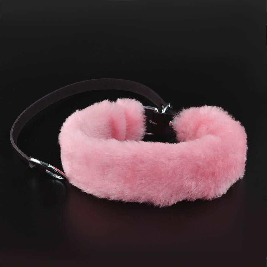 Розовый меховой ошейник с кожаным поводком.